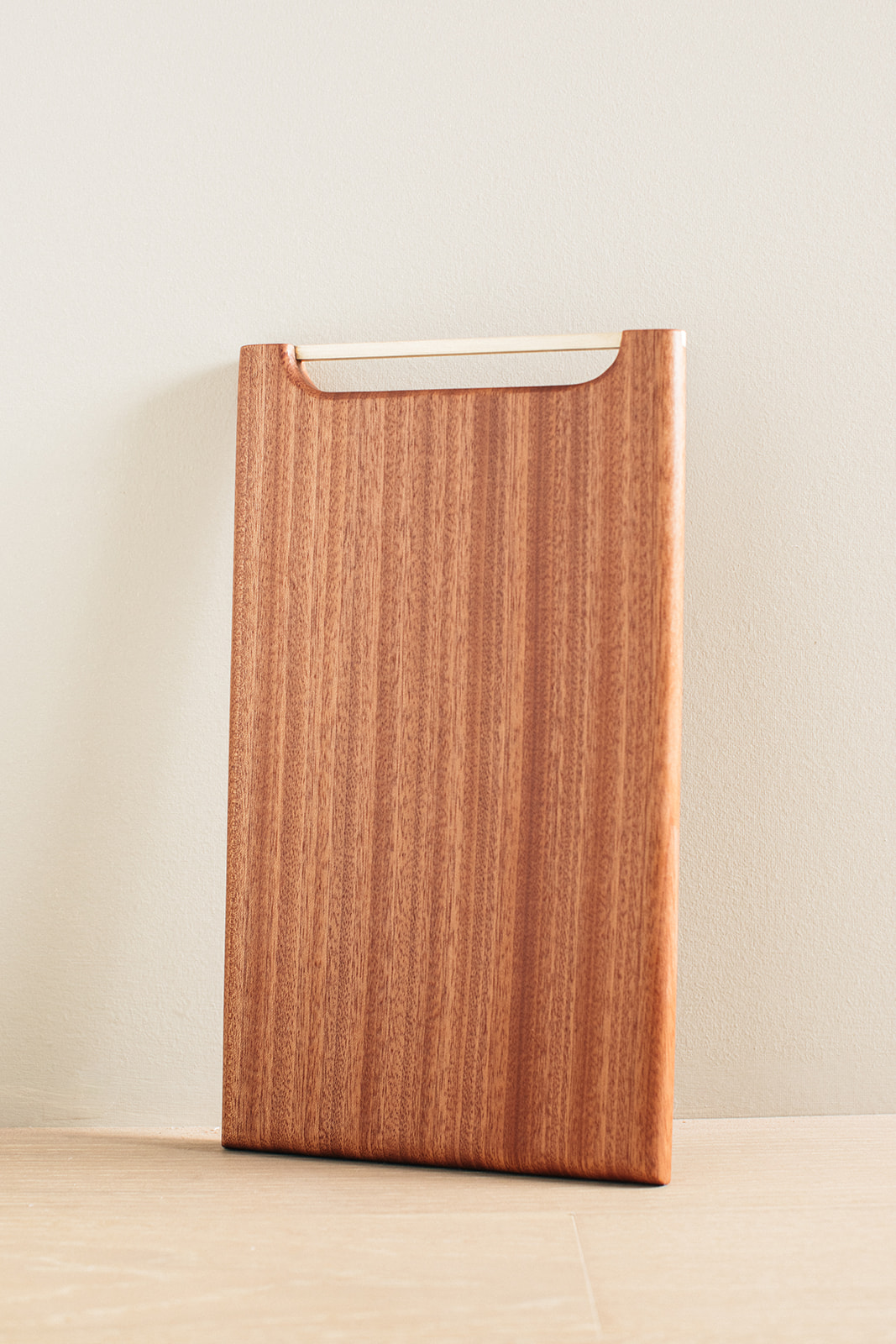 Handmade from cherry and polished brass, our butcher board’s rich grain and warm natural cherry tones make for a vibrant and functional addition to your kitchen, transitioning seamlessly from cutting board to serving platter.